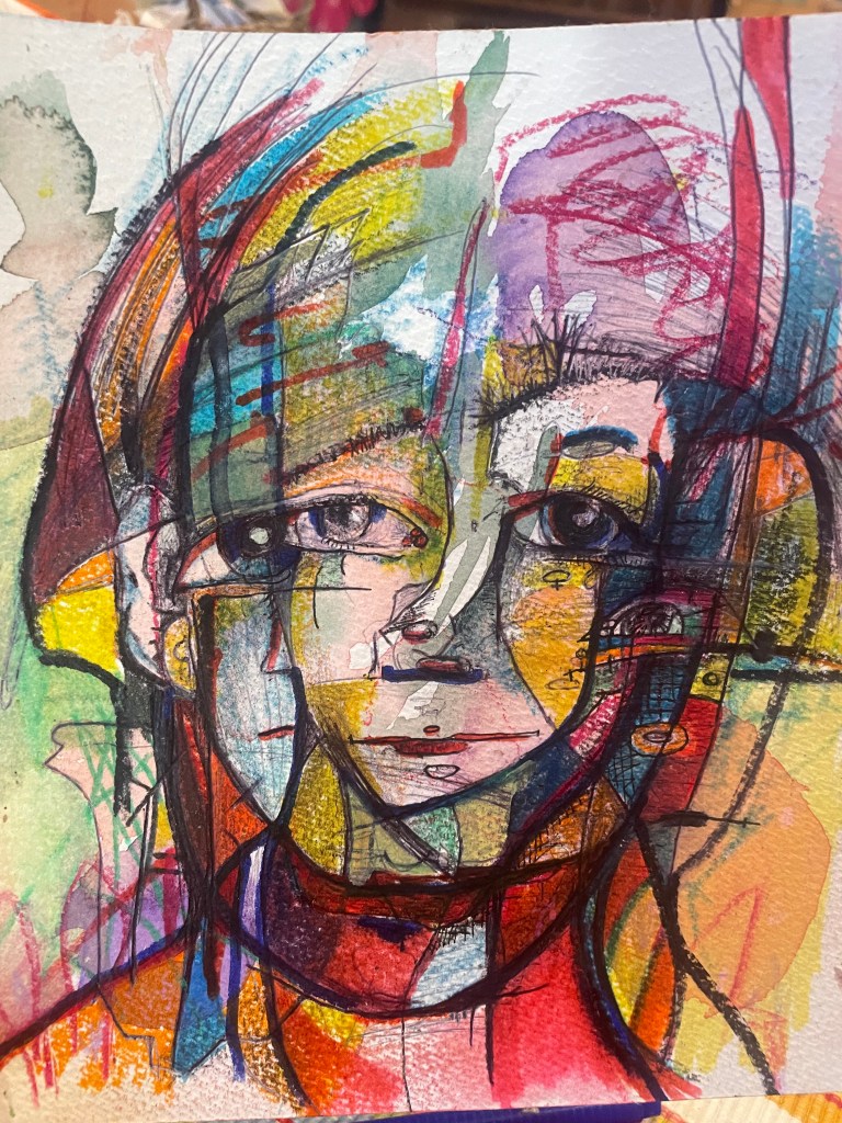 For the last few years my brain has been cramped and scrunched by trauma and therefore, so has my art. Dense with markings and to a degree, darkness. Occasionally I found space on the page but as my eldest said ‘I was allergic to negative space’.